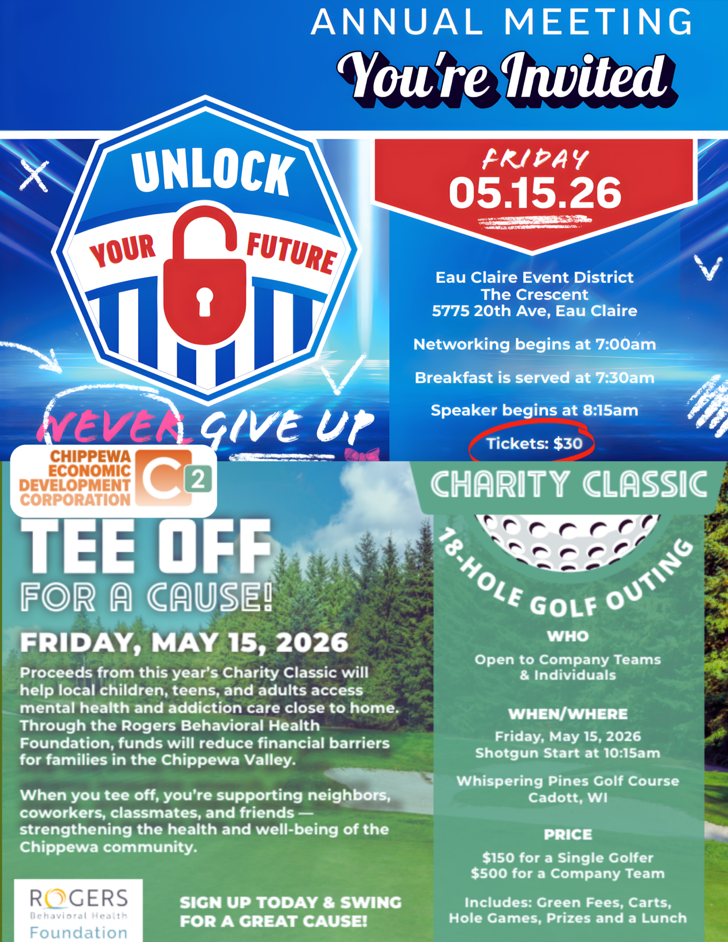 Don’t miss the CEDC’s Annual Meeting on Friday, May 15th! This exciting event is an excellent opportunity to connect, learn, and celebrate our great community. This year’s meeting is hosted at the beautiful Eau Claire Event District: The Crescent.