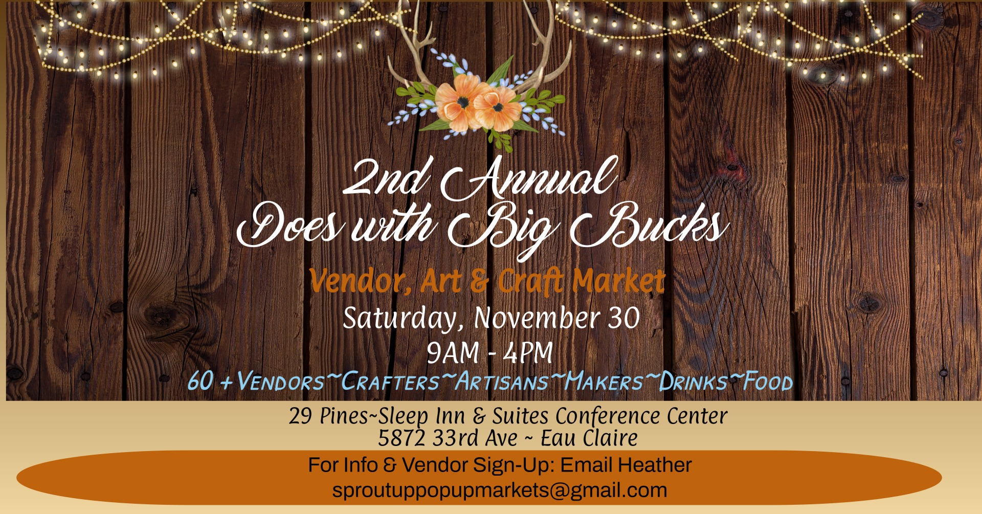 2nd Annual ‘Does with Big Bucks’ Vendor, Art & Craft Market-Saturday, November 30th from 9am-4pm at the 29 Pines Conference Center & Lounge, Eau Claire, WI