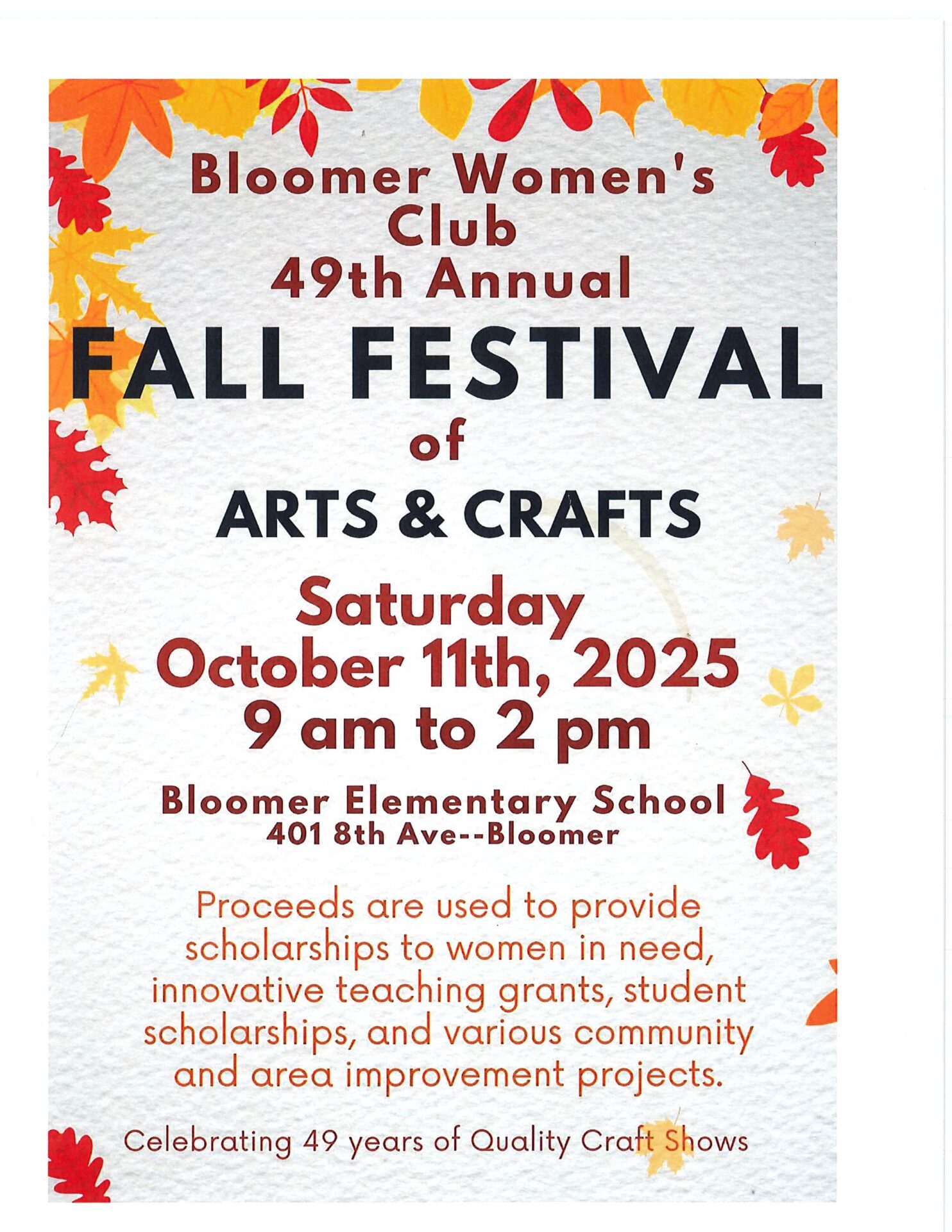 Bloomer Women’s Club 49th Annual Fall Festival of Arts & Crafts
