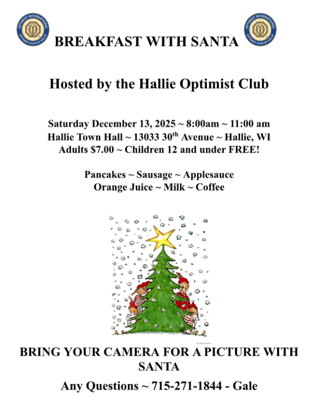 Breakfast with Santa hosted by the Hallie Optimist Club