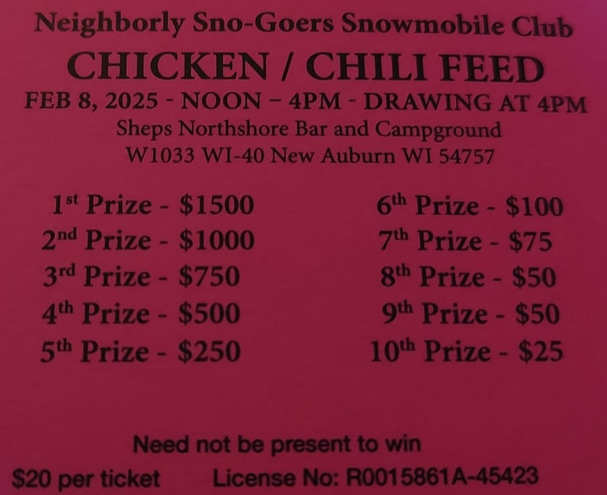 Neighborly Sno-Goers Charcoal Chicken Dinner & Chili Feed Annual Fundraiser