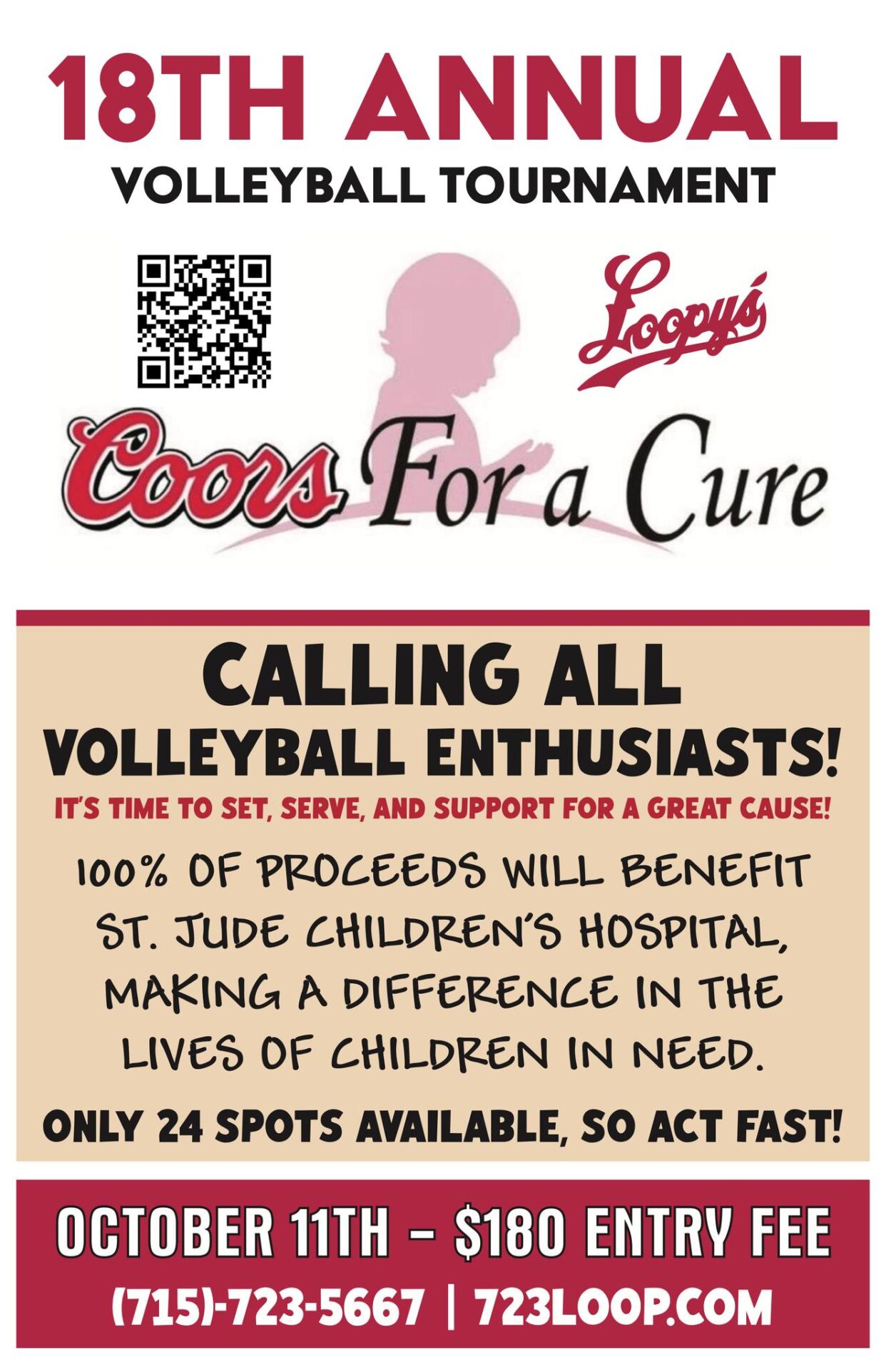 Calling all volleyball enthusiasts! It’s time to set, serve, and support a great cause at our Coors For A Cure Volleyball Tournament! To sign up, fill out out the form here: 723loop.com/coors