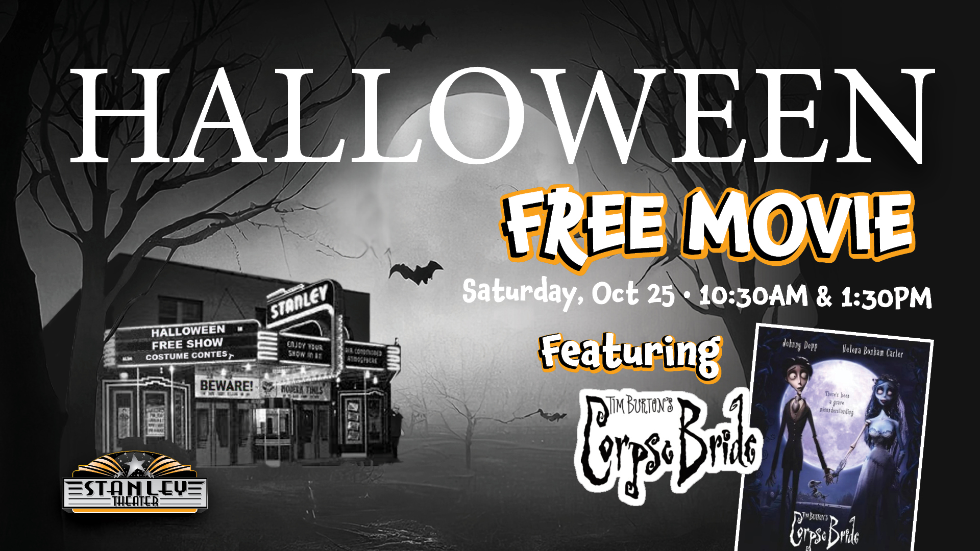 Join us for our annual Halloween Free Movies! There will be 2 opportunities to celebrate with us! One showing at 10:30am and one at 1:30pm on Saturday, October 25th. We will be watching A Corpse Bride. There will be a costume contest after each movie!