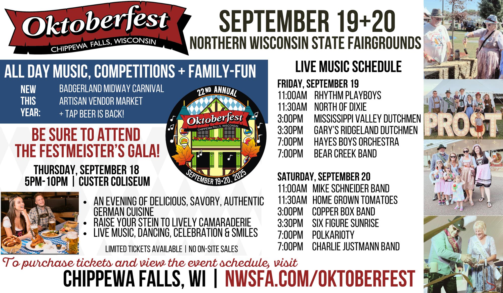 | 3:30pm – 4:00pm | Chippewa Falls Oktoberfest Parade | Throughout Festival Grounds |