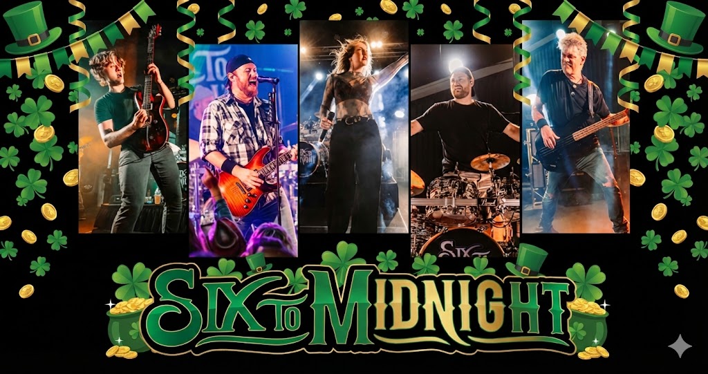 Six to Midnight, a high-energy variety cover band, is returning to the Timber Lodge for a special St. Patrick’s Day afternoon party! The band will perform after the parade, and be sure to wear your best green outfit!!