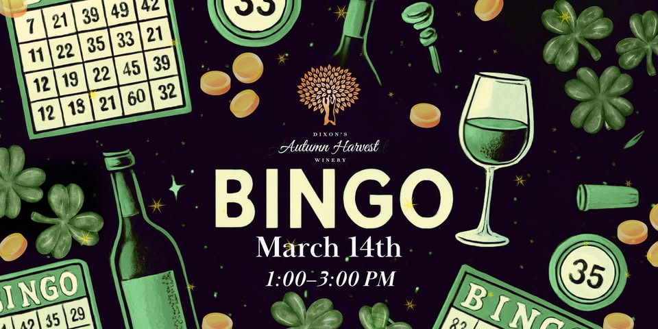 Come to the Loft at Dixon’s Autumn Harvest Winery for a fun-filled afternoon of Bingo & Wine!