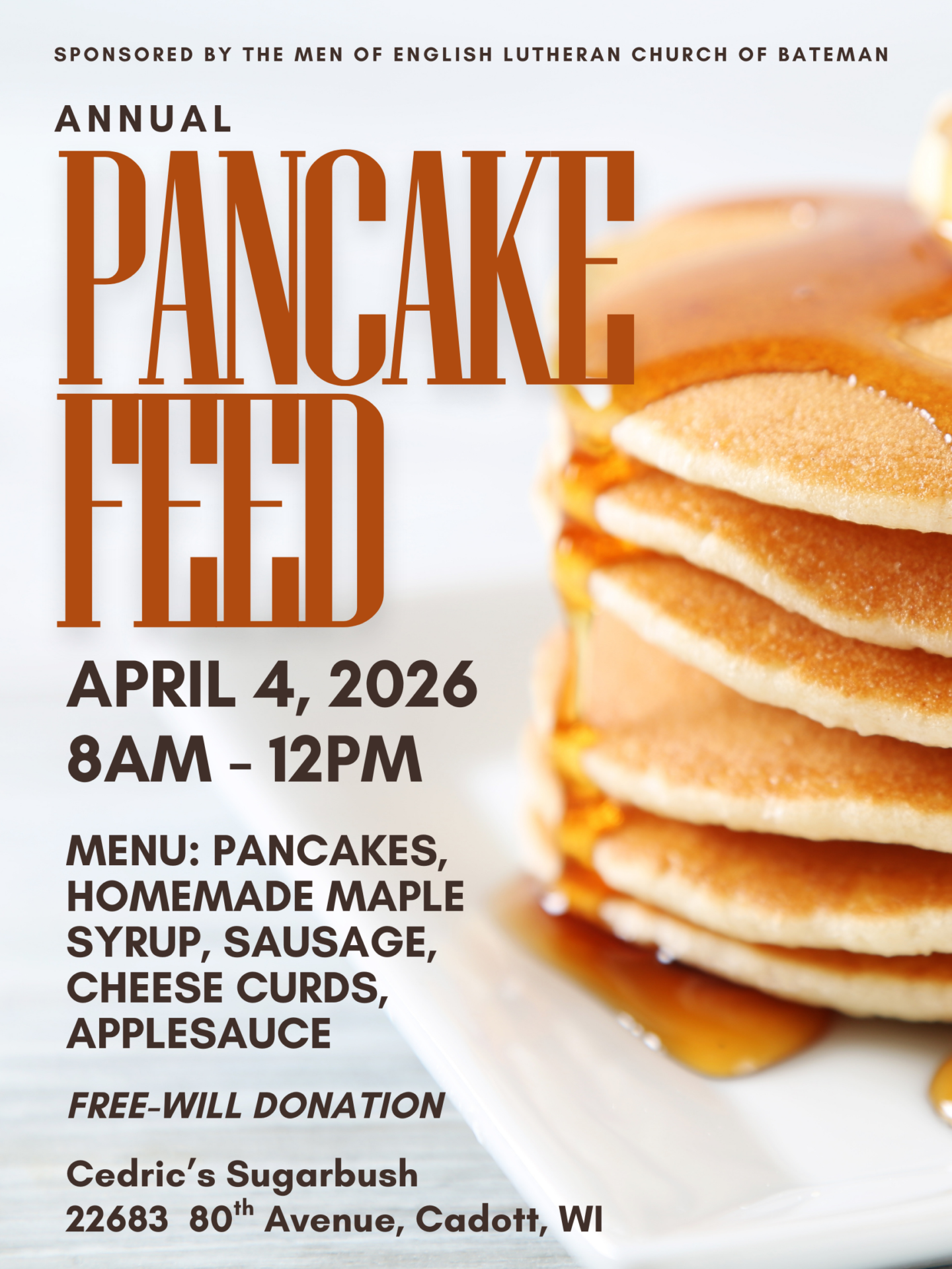 The Men of English are hosting their Annual Pancake Feed again! Menu: Pancakes, homemade maple syrup, sausage, cheese curds and applesauce. Free-will donation. All proceeds will go to Sleep in […]