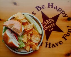 Cabin Coffee Co. is a charming café with an on-site roastery, gourmet drinks, breakfast and lunch food, smoothies, drive-thru, conference room, and catering.