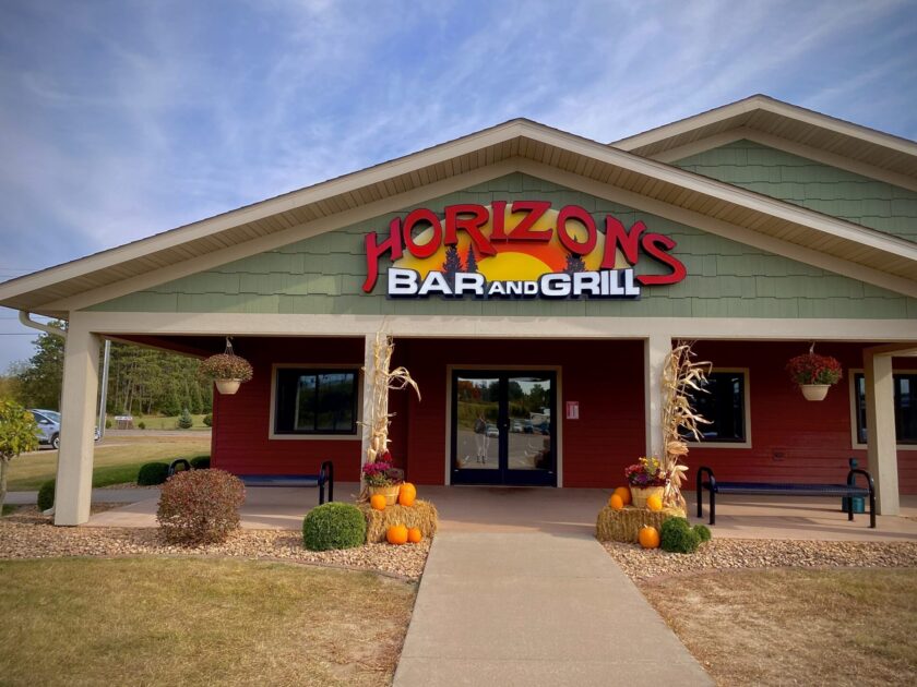 Horizons Bar, Grill and Event Center in Tilden, WI, is a locally owned restaurant and event center that reopened in July 2024. This restaurant offers a wide menu featuring burgers, specialty pizzas, pasta, salads, and wraps. Signature items include the Horizon Burger topped with an onion ring, barbecue sauce, and pulled pork, and a variety of popular specialty pizzas such as bacon cheeseburger and barbecue chicken.