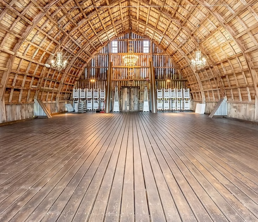 For the event spaces, it has 3 different ceremony locations, with 2 of them being outdoor sites and the final being the large banquet hall in a rustic barn. Both outdoor sites get a great view of the stunning forests and nature around the area.