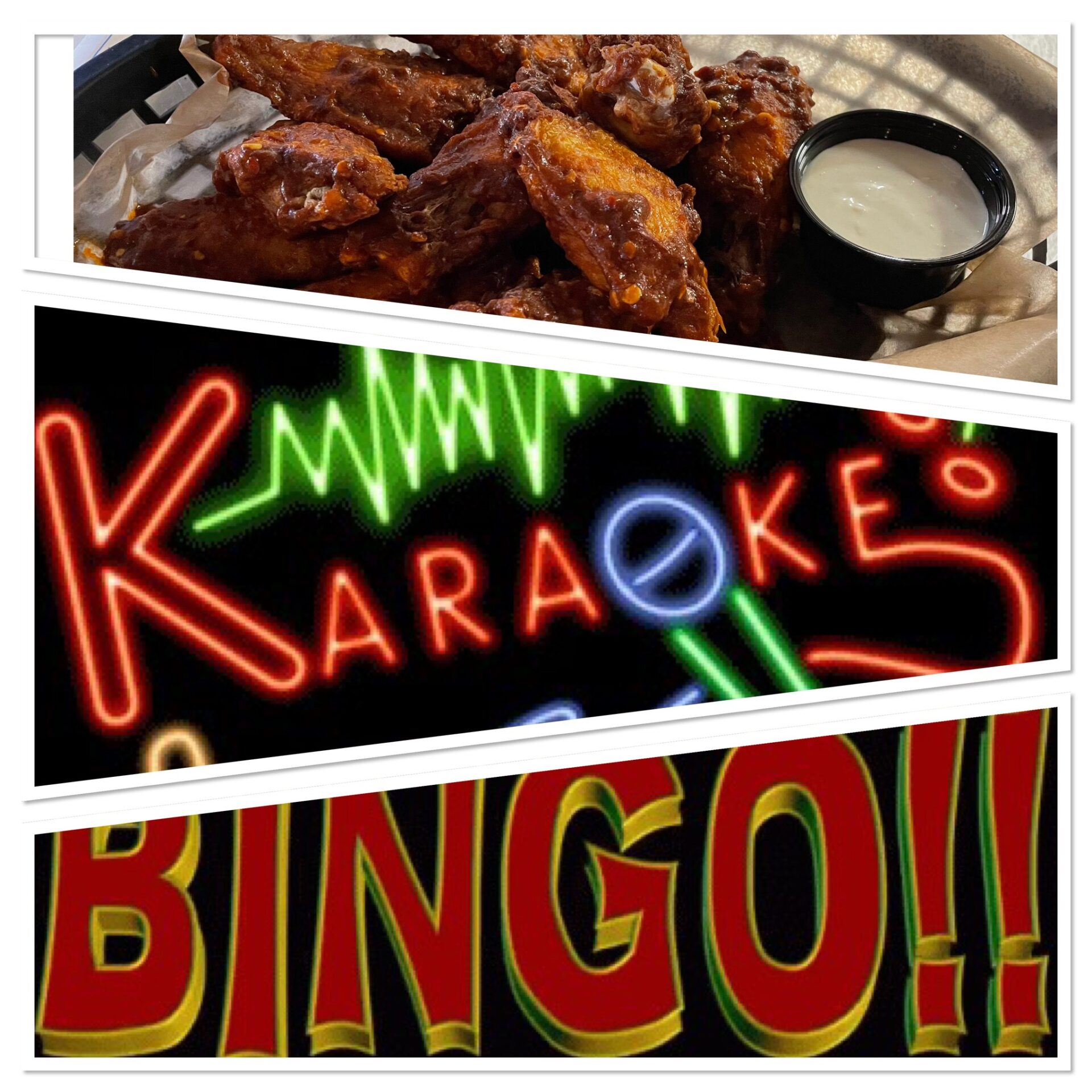 $.75 bone-in Wings! All day! 11am-10pm DINE-IN ONLY Free BINGO with purchase food and or beverage. Must be 18 or older. 7pm-9pmPrizes and blackout weekly progressive pot. Karaoke with DJ Todd 9pm-midnight!