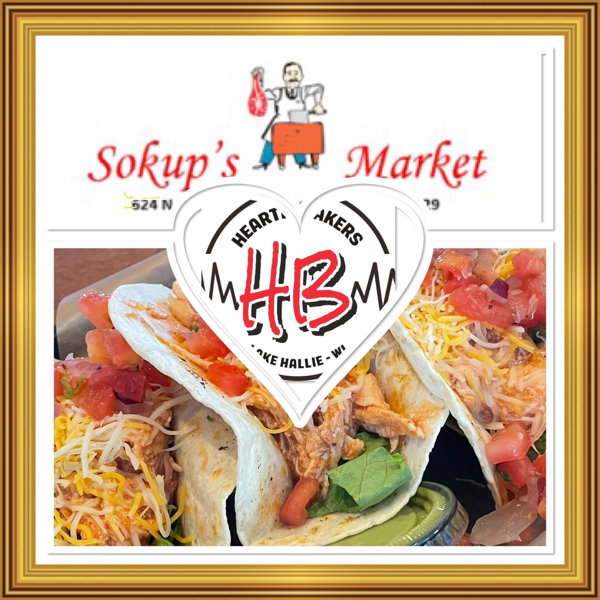 All-day $8.99 3 soft shell tacosBeefChickenPork orShrimp Join us for our weekly meat raffle with choice cuts from Sokups Meat Market.It’s very simple to win meat for every drink that you purchase you get a raffle ticket. We will pick a raffle ticket every 15 minutes till all of the meat has been drawn..