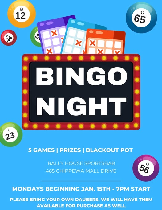 Rally House Sports Bar 465 Chippewa Mall Drive, Chippewa Falls, WI, United States5 Games/Prizes/Blackout Pot